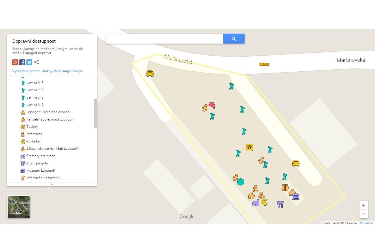 Mapa areálu Lopogolf a dopravní dostupnost do areálu nově na mapách Google